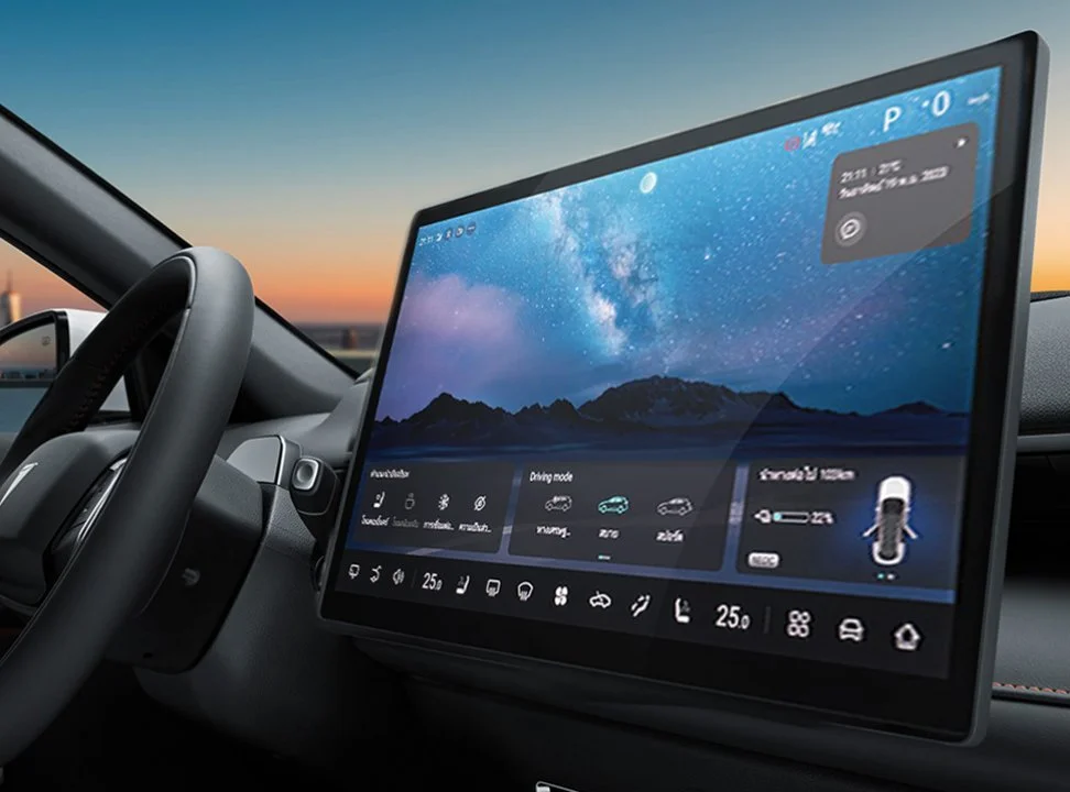 Cuenta con una pantalla de 15,6" que puede rotar 15° a la izquierda y derecha para mejor ángulo de visión del contenido. Desde esta el usuario puede controlar la navegación, música, climatizador y conectividad del teléfono incluyendo Apple CarPlay y Android Auto.