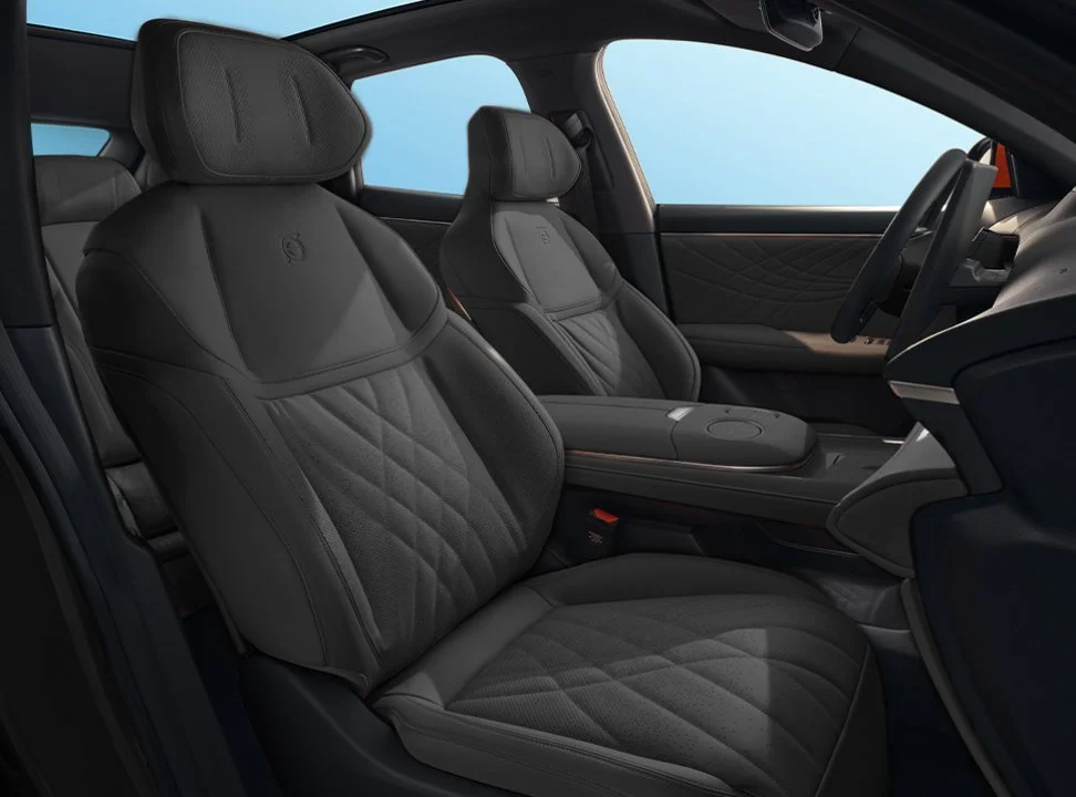 Este SUV eléctrico cuenta con asientos delanteros calefactables y enfriables. El asiento del conductor cuenta con ajuste electrónico de 6 posiciones con soporte lumbar, y su volante con ajuste de temperatura enriquece la experiencia en días fríos.